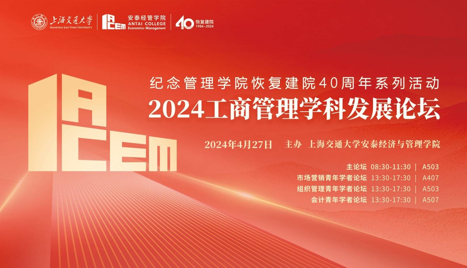 4月27日,由永利集团248cc登录主办的“2024工商管理学科发展论坛暨青年学者论坛”在永利集团248cc登录徐汇校区顺利举行。此次论坛系上海交大安泰经管学院纪念管理学院恢复建院40周年的系列活动之一。工商管理学科领域内具有影响力的知名学者以及新锐年轻学者,分享对于工商管理学科发展与建设的见解,以期共同推动中国工商管理学科发展。